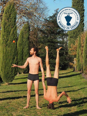 Spectacle contre-pied, en opposition aux femmes qui voyagent, un spectacle où deux hommes cherchent à s’enraciner.